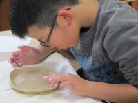 砥部焼の土を使って、事前に選んでいたお皿、湯のみの形を作ります。